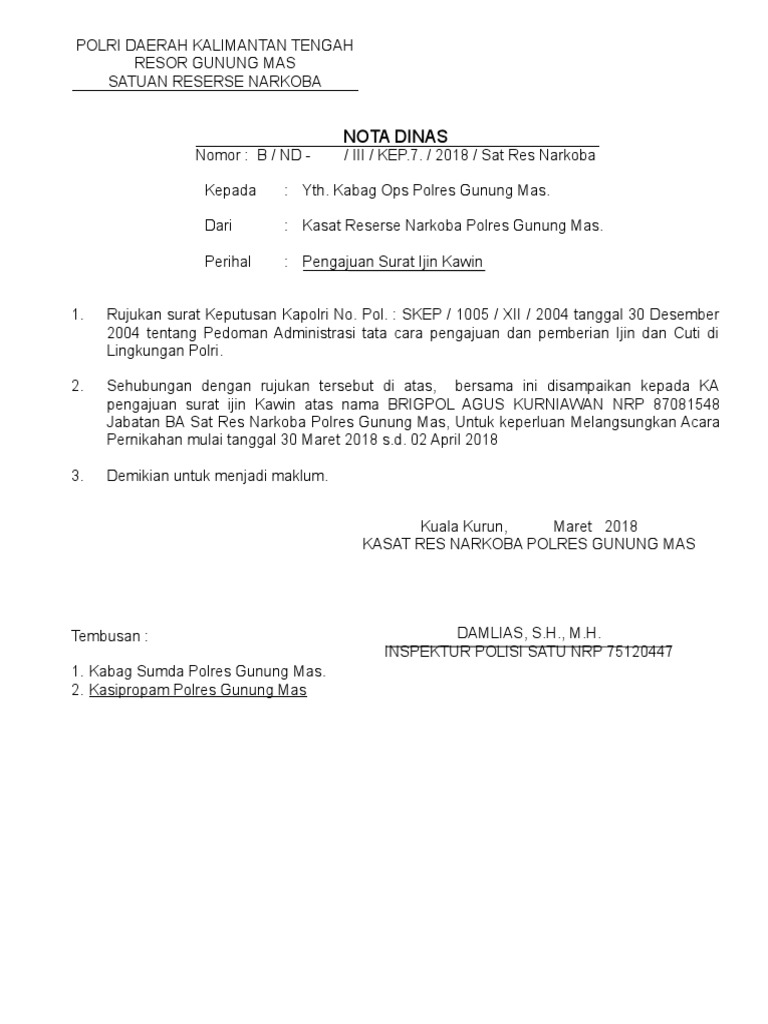 Contoh Surat Nota Dinas Kepolisian Contoh Surat